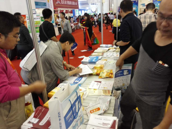 健信制药展示区现场,客人络绎不绝上前咨询。